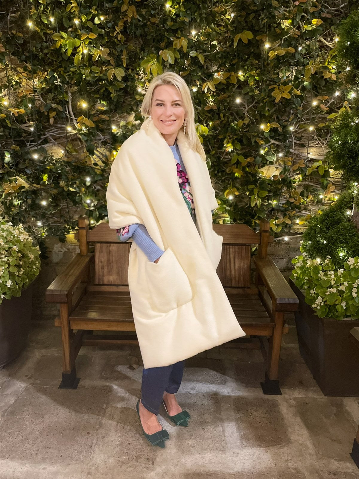 Lush, warm Angora wrap with two pockets. Amazing for any cold climate. Lined with Italian down lining which will keep anyone warm. Great for ski trips, can easily be transformed into a blanket when traveling on a plane. Transitions easily from casual daywear to elegant evening attire.